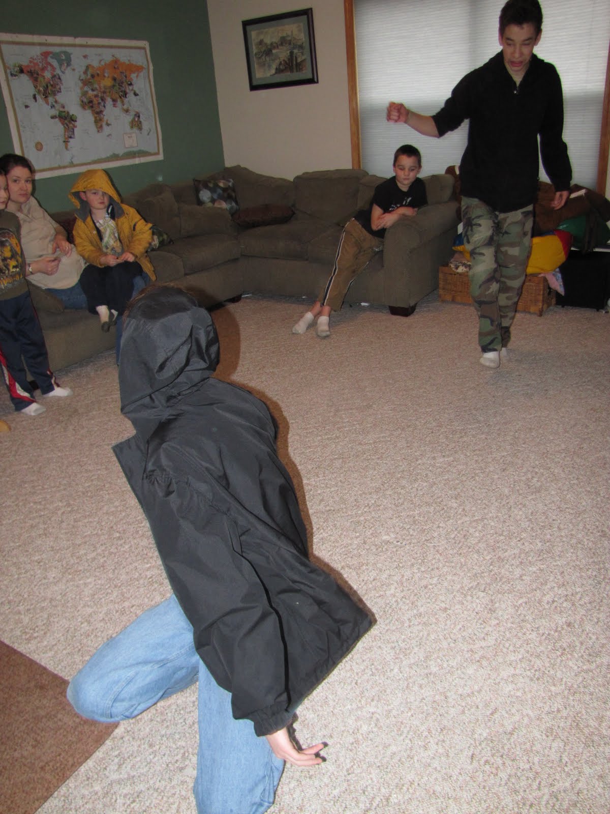 I had "Lords and Ladies" for the first time at our house. I was nervous, but I think it turned out fun. Robert and I told of our favorite facts we've learned about animals this year (since that is what we have been studying for Science.) We then split the group of about 20 kids into 4 groups to come up with questions for Jeopardy. We borrowed a fun buzzer device from a friend for answering the questions.